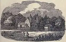Givins was released in 1781. No record exists of his activities until he was appointed a lieutenant with the Queen's Rangers on November 30, 1791.[3] Knowledgeable in Ojibwe, he served as a courier and interpreter for Lieutenant Governor Simcoe in Simcoe's dealings with the province's Indians. In June 1797 he was appointed the post of Indian Agent for the town of York by Peter Russell. Among Givins's duties were various official interactions with Indian bands, such as the distribution of annual gifts due from land surrenders. He was also charged with the task of keeping the Six Nations of Upper Canada under Joseph Brant's leadership from forming a viable alliance with the Mississaugas of Upper Canada.[2][3] He married Angelica Andrews on December 29, 1797.[4] In 1802 Givins built a large estate west of Toronto on land he received as a loyalist fighter in the American Revolution. He dubbed the estate Pine Grove.[1] The Queen's Rangers were disbanded in 1803, and Givins was made a captain of the 5th foot regiment on November 19, 1803.