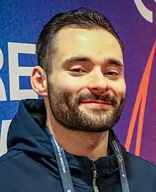 James Robert Hall (born 6 October 1995)[1] is an English artistic gymnast. A member of the English and British Senior teams since 2014, he has best known as an all-around and team gymnast, having won all-around bronze and team gold and silver in the European Artistic Gymnastic Championships and two team golds and an individual all-round silver in the Commonwealth Games. His signature piece is horizontal bar, in which he has won silver at the 2022 Commonwealth Games