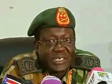 ![]() General Hoth Mai fronting a news conference in Juba, January 2014 | |