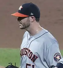 On March 31, 2017, he was optioned to the Fresno Grizzlies of the Class AAA Pacific Coast League.[11] On April 20, 2017, the Astros promoted Hoyt to the major leagues.[12] Hoyt made 32 appearances out of the bullpen for the Astros in 2017, finishing with a 1–0 record and a 4.38 ERA. The Astros finished the season with a 101–61 record for an AL West pennant, and eventually won the 2017 World Series. Hoyt did not participate in the playoff run, but was still on the team's 40-man roster at the time, declaring him eligible for his first career World Series title.[13]