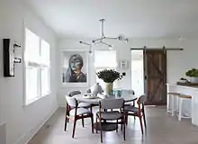 From his days as a child in upstate New York, Ford has been drawn to the strength, shape and scale of American industrial craftsmanship.[6] When designing a Manhattan townhouse, a beach house getaway, or a Northern California residence, James Huniford blends new and old, uniting found objects with refined materials in distinctive combinations and vignettes. Whether it's the gentle curve of a whale bone or the circular repetition of oversized gears, one-of-a-kind objects inspire all of Huniford's designs. His signature use of calming wall colors highlights the importance of objects, art, and furniture, as a canvas does for a painter.[4]