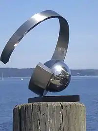 Touching the Intangible (2013) is part of the Fred Hutchinson Cancer Research Center's art collection. The sculpture represents the efforts of doctors and scientists who search for the causes and cures of HIV/AIDS and other infectious diseases. From the artist: "Everyone at The Hutch is on a never-ending search for cures for diseases. The irony is that once they discover a potential cure, they simply pass it on to others to carry on the work and begin their search all over again with yet another disease. They are on the cutting edge of discovery."[1] The sculpture stands in front of the FHCRC's Vaccine and Infectious Disease Building in Seattle.