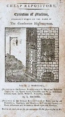 - Execution of Maclean, Commonly Known by the Name of The Gentleman Highwayman, Cheap Repository for Religious and Moral Tracts (S. Hazard, Bath/J. Marshall and R. White, London, n.d.). Read at Google.