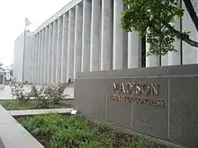With the help of former Librarian of Congress Lawrence Quincy Mumford, plans for a third Library of Congress building were started in 1957.[3] Congress appropriated planning funds for the structure in 1960, and construction was approved by an act of Congress on October 19, 1965, that authorized an appropriation of $75 million (equivalent to $645 million in 2021).[3] The architect was John George Stewart (1890–1970), Architect of the Capitol. Excavation and foundation work began in June 1971, and work on the superstructure was completed in 1976.[3] The cornerstone, inscribed with the date 1974, was laid on March 8, 1974.[3] Dedication ceremonies were held on April 24, 1980, and the building actually opened on May 28, 1980.[3] It was decided to name the building after Madison largely because he was the person who originally suggested in 1783 that the Continental Congress form a library containing a list of books that would be useful to legislators.