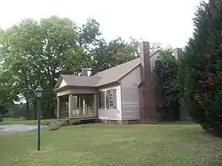 The original block of the house is five bays wide, with a small pedimented porch covering the double front door, which is surrounded by a transom and sidelights. A pair of nine-over-six sash windows flank the porch on either side. An addition was built on the left side of the façade in the mid-19th century, adding a hallway and two rooms to the center-hall plan layout. A wing to the rear of the house was originally attached via an open breezeway which was later enclosed. The entire house has Federal-style woodwork with some Greek Revival details, such as fluted Doric columns and pilasters on the front porch.[3]