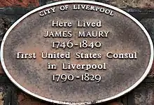 James Maury (3 Feb 1746 – 23 Feb 1840) was one of the first United States diplomats and one of the first American consuls appointed overseas. In 1790 he was appointed to the Consulate of the United States in Liverpool,[1] one of the first overseas consulates founded by the then fledgling United States of America. Maury held the position of consul for 39 years until he was removed from office by President Andrew Jackson in 1829.[2]