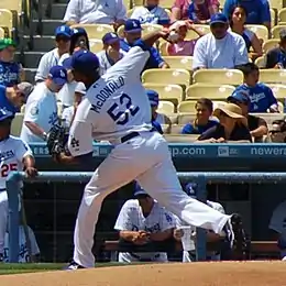 He made his professional debut pitching for the Gulf Coast Dodgers in 2003, where he compiled a modest 3.33 ERA with 47 strikeouts over 48.2 innings of work, although unfortunately a case of tendinitis prevented him from pitching in 2004 and most of the 2005. But instead of opting for a rehab program, McDonald and others were still interested in his hitting ability. He made the switch to outfield, thinking he could still work with trainers while keeping occupied in left field, but after sub-.230 batting averages in '04 with the Gulf Coast Dodgers and again in 2005 with the Ogden Raptors, he expressed his desire to return to pitching. "When I was in the outfield, I felt like I was just running around. I am a lot more competitive when I'm pitching, it's more up to me to get guys out." he explained to Bill Shelley. In 2006, he was back on the hill full-time for the South Atlantic League's Columbus Catfish where he led the pitching staff with an ERA of 3.97 and 147 strikeouts in 143 innings of work but only managed to finish with a record of 5–10.[1] McDonald started 2007 with the Inland Empire 66ers before he was promoted to the Double-A Jacksonville Suns. He was named the Dodgers' Minor League Pitcher of the Year in 2007.[2] In August 2008, he was promoted to the Dodgers Triple-A affiliate, Las Vegas 51s. He went 1–0 in his first two starts, striking out 20 batters in that span. He was called up to the Dodgers on September 1, 2008. He made his major league debut on September 17, 2008, against the Pittsburgh Pirates, working one scoreless inning in relief. In February 2009, McDonald was named the #56 prospect in baseball by Baseball America.[3] McDonald then earned a spot in the Dodgers' starting rotation to begin the 2009 season and started his first game in the majors on April 10, 2009, at Chase Field against the Arizona Diamondbacks, allowing five runs in a little over two innings. He made three more starts, only lasting as many as five innings in one (April 25 against the Colorado Rockies, his first career victory), and then was demoted back to the bullpen. With an ERA of 6.75, he was optioned back to AAA on May 14, and then recalled by the Dodgers on June 19. After being recalled, he pitched exclusively out of the bullpen the rest of the season. McDonald began 2010 in the starting rotation for the Albuquerque Isotopes. He was recalled by the Dodgers to start the game on July 19 against the San Francisco Giants. He made a few additional appearances in the bullpen for the Dodgers. On July 31, 2010, McDonald was traded along with outfielder Andrew Lambo to the Pittsburgh Pirates for reliever Octavio Dotel.[4]