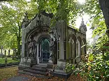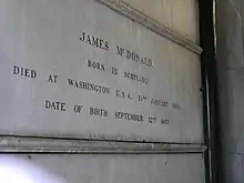 In 1906, after having worked uninterruptedly for more than forty-six years, McDonald developed a serious affliction of the heart and was compelled to retire from all active business. After that time he travelled to all parts of the world in search of health, under orders of his physicians to avoid exertion, physical or mental, as much as possible. Finding it necessary to live in a warm climate, he went to Southern California in the winter of 1911-12 and spent the season there, planning the return there each winter in the future. McDonald died on January 13, 1915, in Washington, D.C.[2] and was buried in the family mausoleum in Brompton Cemetery.