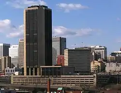 The James Monroe Building is an office building located in Downtown Richmond, Virginia. It is the tallest building in Richmond at 137 meters (449 ft) and 29 floors. Only 25 of the floors, however, are actually occupiable as the top and middle two are maintenance floors.[2] Although it is the tallest building in Richmond, its location at the bottom of a hill gives it the appearance of being roughly the same height as other buildings in the Richmond skyline. The building has a parking garage at its base and is located adjacent to Interstate 95.