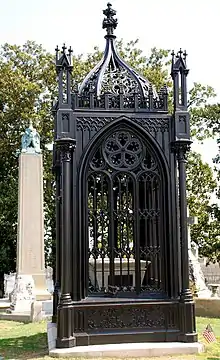 The James Monroe Tomb is the burial place of U.S. President James Monroe in Hollywood Cemetery, Richmond, Virginia, United States. The principal feature of the tomb is an architecturally unusual cast iron cage, designed by Albert Lybrock and installed in 1859 after Monroe's body was moved from Marble Cemetery in New York City. The tomb was declared a National Historic Landmark in 1971 for its unique architecture.[2][4] To Richmonders it is colloquially known as The Birdcage.