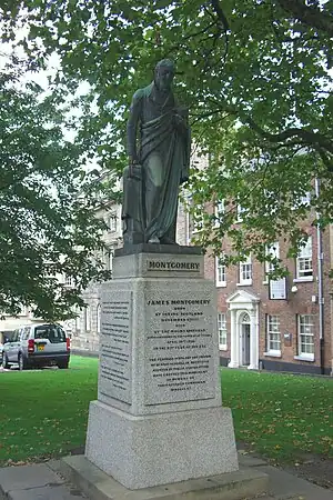 James Montgomery (4 November 1771 – 30 April 1854) was a Scottish-born hymn writer, poet and editor, who eventually settled in Sheffield. He was raised in the Moravian Church and theologically trained there, so that his writings often reflect concern for humanitarian causes, such as the abolition of slavery and the exploitation of child chimney sweeps.[1]