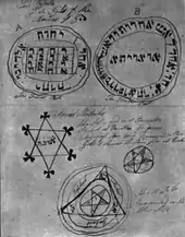 Murrell's correspondences and papers – then contained in the wooden chest owned by his son – were examined by Morrison during the course of his research.[54] Morrison discovered that Murrell was in possession of the manuscript of Key of Solomon grimoire on which he based his magical practise.[55] These texts survived until 1956, at which point they were burned by someone who did not believe them to be of any importance.[56] Many of Murrell's handwritten books were also lost, although his scrapbook of astrological data had survived until at least the late 1950s, when it was in the collection of a local man who also possessed Murrell's iron churchwarden pipe.[11]