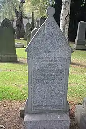He was buried with his wife and daughter in the north-west section of Grange Cemetery in Edinburgh.