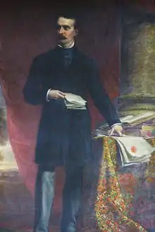 On December 21, 1879, James Prendergast, 31, a prominent lawyer and grandson of James Prendergast, the founder of Jamestown, unexpectedly died in Buffalo, NY, while being treated for an illness.[8] He had begun to write a will, but it was not complete when he died.[9] While arranging James' business affairs, his business partner, Eleazer Green, discovered a memorandum[10] that James wished the income from his business interests, the Prendergast block, be used to establish a free library in Jamestown.[11][12][13] On January 1, 1880, eleven days after his death, It was announced that James' parents, Alexander and Mary Prendergast, had already taken steps to ensure that their son's wishes would "be carried out to the every letter."[14]