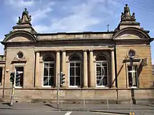 Rhind retained his base in Inverness while he temporarily occupied offices in Glasgow city centre during the construction of the new Carnegie libraries. In Scotland the Carnegie libraries were typically built of stone.[1] In the rest of the British Isles there was much more use of brick. The drawings of the Carnegie libraries designed by architect James Robert Rhind are in the Strathclyde Archives, Glasgow.[2]