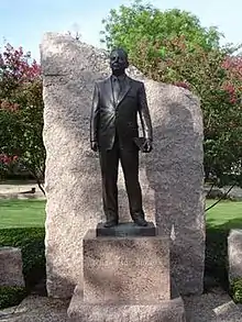 In memory of James Earl Rudder, 1910–1970, Class of 1932, Heroic Soldier, Commissioner of the General Land Office of Texas, Sixteenth President of Texas A&M University ... Third President of the Texas A&M University System. Earl Rudder was architect of the dream that produced this center. In this, as in all he did, he demonstrated uncommon ability to inspire men and lead them to exceptional achievement.