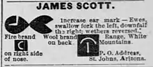 When the Arizona Wool Growers Association was incorporated in 1899, Scott was on the board of the directors, as well as being president of its eastern division.[26][27] In 1904, Scott was elected secretary of the Wool Grower's Association.[28] In 1907, Governor Kibbey appointed Scott to the state's sheep sanitary board.[29] In June 1908, Scott was stricken with an appendicitis, which made him seriously ill.[30][31] In October 1908, Scott was selected by the Republicans to run for the Navajo County Board of Supervisors.[32] In a very close election in November, the two Republicans, Scott and O. B. Sutton, narrowly defeated their two Democrat opponents. Scott finished in second, only 2 votes ahead of his nearest opponent.[33][34] In 1909, Scott was elected to the chairmanship of the state Sheep Sanitary Board.[35][36] He served until he was replaced in 1912, when Governor Hunt named three new members.[37]