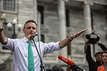 James Peter Edward Shaw (born 6 May 1973) is a New Zealand politician and a leader of the Green Party of Aotearoa New Zealand. Voters elected Shaw to the New Zealand parliament at the 2014 general election as a list representative of the Green Party. The party selected Shaw as its male co-leader in May 2015. Following Metiria Turei's resignation in August 2017, Shaw became the party's sole leader for the duration of the 2017 general election.[1]