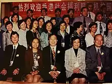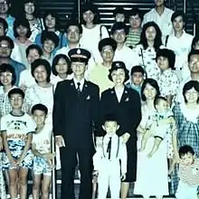 ![]() James Ling (centre in uniform) with wife Fona and son Samuel; bidding farewell to friends at Kai Tak Airport before they set off to their appointment in Sydney | |