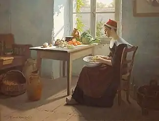 In 1891, he married Richards, who was also in Paris, studying at the Académie Julian. During their honeymoon trip, they stayed in Brittany, at the Pont-Aven Artists' Colony. After returning to Paris, he exhibited his painting, "Preparations for Dinner" at the Salon, which was praised by his former teacher, Bonnat.[3] In 1893, he settled in Salt Lake City. There, together with Edwin Evans and John Hafen, he founded an "Academy of Art". That same year, Harriet exhibited one of her oils in the Utah Pavilion at the World's Columbian Exposition in Chicago, alongside "Preparations for Dinner".