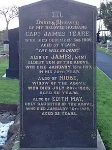 James Teare (6 August 1872 – 3 December 1909) was a Manx merchant navy officer who served as a seaman and later as an officer on numerous Isle of Man Steam Packet Company vessels. Capt. Teare is best known as the Master of the RMS Ellan Vannin on her ill-fated voyage from Ramsey, Isle of Man to Liverpool on 3 December 1909.[1]