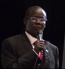 James Wani Igga (born 1949) is a South Sudanese who was the second vice president of South Sudan.[3] He was speaker of the National Legislative Assembly from 2011 to 2013[4] and secretary general of the Sudan People's Liberation Movement.[5] On 30 May 2020, he tested positive for COVID-19.[6]