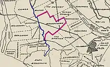 Wemyss came to New Zealand in 1852 on the Agra and took up large sheep runs.[1] Broadlands Station was a sheep station in Canterbury, located north of the Selwyn River / Waikirikiri. It was made up of four individual runs: 40, 74, 85, and 95. After his arrival, Wemyss bought run 40, the western part Broadlands, from John Studholme. On 5 November 1853, Wemyss bought run 95 from Studholme. Wemyss sold those two runs to John Cracroft Wilson on 8 August 1854.[3]