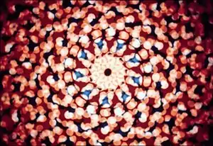 Analogue computer equipment developed by brother John, allowed James to complete Lapis (1966) in two years, when it might have taken seven years otherwise. James drew dot patterns again for this film, but the camera was positioned using computer control, allowing each image to be overlaid from multiple angles. In this piece, smaller circles oscillate in and out in an array of colors resembling a kaleidoscope while being accompanied by Indian sitar music. The patterns become hypnotic and trance inducing.