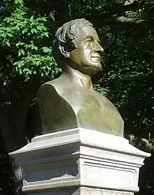 MacDonald designed many busts, some of which were installed in courthouses and public parks.[2][3] Among his subjects were Senator Thomas Hart Benton, Congressman Charles O'Connor, and Ambassador Washington Irving.[2][4] MacDonald became known as "America's oldest sculptor."[4]