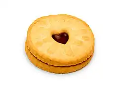 Jammie Dodgers are a popular British biscuit, made from shortcake with a raspberry or strawberry flavoured jam filling. Introduced in 1960,[1] they are currently produced by Burton's Biscuit Company at its factory in Llantarnam. In 2009, Jammie Dodgers were the most popular children's sweet biscuit brand in the United Kingdom, with 40% of the year's sales consumed by adults.[2]
