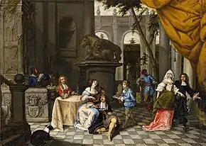 Recent research has ascribed to Monteyne a series of paintings that had previously been attributed to another Flemish genre painter of his time, Pieter Angelis.[4]