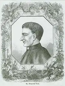 He spent most of his life in Ciechanowiec where he died.[1] He was a Catholic priest, and vicar of Ciechanowiec.[2] Kluk described several taxa of Lepidoptera including the Holarctic Nymphalis, the South American genus Heliconius, and the genus Danaus in which is placed the monarch.