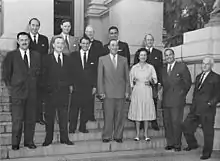 ![]() Walter Stanford, Harry Lawrence, Boris Wilson, Jan Steytler, Helen Suzman, Colin Eglin, Owen Williams, Ray Swart, Clive van Ryneveld, John Cope, Zach de Beer and Ronald Butcher in 1960 | |