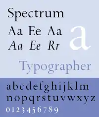 - "Spectrum MT". MyFonts. Archived from the original on 19 July 2019. Retrieved 17 September 2015.