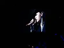 In the first half of 2015, Zhang participated in the Chinese music show I am a singer. She sang two English songs "Bang Bang" and "All of Me" on the show, which led to the spread of these two songs in China. John Legend, the singer of "All of Me" was invited to perform as a guest performer at the Bang the World Tour Chengdu concert.[45] In the middle of the year, Paramount Pictures announced that Zhang sang the theme song "Fighting Shadows" with Big Sean for the American film Terminator Genisys. It was the first time that Zhang has recorded a song for an English-language film.[46] On June 30, 2015, the song was released by Sony Music Entertainment in Asia while Def Jam Recordings released it in other parts of the world.[47] In October 2015, Zhang and DJ Tiesto released Change Your World, the theme song of the 2015 Budweiser Storm Music Festival.[48] Her 2015 Bang the World Tour was held to commemorate her singing career for a decade. The record company originally planned to record videos of the Beijing concert for the release of the DVD, but an accident occurred at the show: Zhang fell off from a two-meter round hollow of the elevator platform on the stage, which led to the tour's cancellation.[49] Zhang was voted the Best World Act of the Asia region in the 2015 MTV Europe Music Awards. When she went to the award ceremony, she was told to stay backstage and accept the award there. Zhang and her team considered this treatment unfair and discriminatory, so they decided to officially pull out of the award's red carpet ceremony and all other EMA activities.[50]
