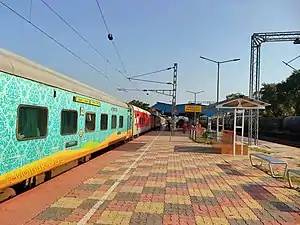 In 1913, the Bandel–Katwa Railway constructed a 5 ft 6 in (1,676 mm) broad gauge line from Bandel to Katwa, and the Barharwa–Azimganj–Katwa Railway constructed the 5 ft 6 in (1,676 mm) broad gauge Barharwa–Azimganj–Katwa loop.[2][3] With the construction of the Farakka Barrage and opening of the railway bridge in 1971, the railway communication picture of this line were completely changed. Total 32 trains including few passenger and express trains stop at Jangipur Road railway station.[4] The distance between Jangipur Road and Howrah railway station is approximately 252 km.[5]