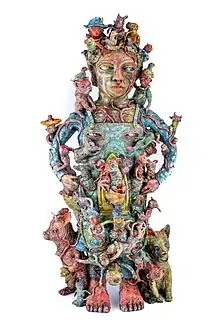 Wunderlich's preferred mediums are clay and printmaking. Her work is a distinctive mix of styles and themes and a special emphasis on motherhood.[3] She has been the recipient of fellowships from the Ohio Arts Council and the Greater Columbus Arts Council.[4] She spent a summer in Dresden, Germany on a residency studying modern and historic techniques of porcelain figurine manufacturing at the Meissen Factory in Meissen, Germany.[5] She has been featured in Ceramics Monthly, The Best of New Ceramic Art, 500 Figures in Clay, and Dialogue Journal.[6] In 2019, Wunderlich premiered her exhibit "Deep" in the Western Illinois University's Heating Plant Annex Gallery.[7]
