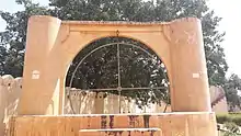 - Shastansh Yantra (next to Vrihat Samrat Yantra) This instrument has a 60-degree arc built in the meridian plane within a dark chamber. At noon, the sun's pinhole image falls on a scale below enabling the observer to measure the zenith distance, declination, and the diameter of the Sun.)[11]