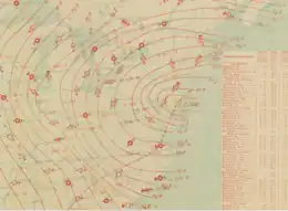 - United States Army Signal Corps (February 1886). "Chart I. Tracks of Areas of Low Pressure. January, 1886" (PDF). War Department. Retrieved 2015-02-21.