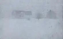The blizzard deposited 24.2 inches (61 cm) in Boston from late Friday night until Saturday late afternoon, making it the seventh-largest snowstorm for Boston, behind storms in 2003, 1978, 1969, 1997, 2013, and 2015.[74] The 23.6 inches (60 cm) of snow the city received on Saturday, January 29 tied its all-time one-day snowfall record first set on February 17, 2003.[39][75] Snow was falling at rates of between 2 and 4 inches (5.1 and 10.2 centimetres) an hour, and was being blown by winds up to 70 mph (110 km/h) resulting in blizzard and near zero visibility conditions for most of Eastern Massachusetts, including Cape Cod, for most of Saturday's daylight hours.[76][77][68] Massachusetts banned heavy trucks from state highways.[57] Commuter rail into Boston had significant delays and cancellations throughout the day, a number of bus routes' service was suspended due to poor visibility (with about 30 buses getting stuck in heavy snow), and service on two surface sections of two subway lines was replaced with buses.[78] Approximately 91% of arrivals and departures, 617 flights in total, were cancelled at Boston's Logan Airport on January 29.[79] Many flights for the morning of January 30 were also cancelled.[58] Boston ran buses on some segments of its subway lines on January 30 and during the evening of January 31 to enable full clearing of snow from subway tracks.[7][80]