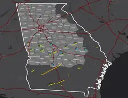 ![]() Tracks of the record-breaking 42 tornadoes that touched down across Georgia on January 21–22 | |