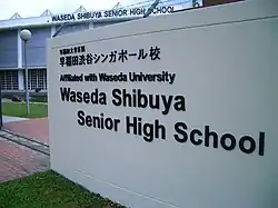 The Japanese School Singapore (Japanese: シンガポール日本人学校 Shingapōru Nihonjin Gakkō) serves elementary and junior high students and the Waseda Shibuya Senior High School in Singapore (Japanese: 早稲田大学系属早稲田渋谷シンガポール校 Waseda Shibuya Shingapōru Kō) (formerly Shibuya Makuhari Singapore School) serves high school students. Both schools hold annual festivals open to members of the public who are interested in Japanese culture.