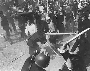 The perceived unequal nature of the treaty provoked vigorous opposition in Japan, most notably, the May 1, 1952 "Bloody May Day" incident.[2] Calls arose from both the left and the right in Japan to revise the humiliating treaty.[4] Although the United States initially resisted pressures to revise the treaty, over the course of the 1950s, a massive anti-base movement arose in Japan, including major incidents such as the Sunagawa Struggle from 1955-1957 and the Girard incident in 1957.[5] As a result, the U.S. government was forced into the recognition that U.S. bases in Japan could be rendered unusable by popular opposition, and finally agreed to negotiate a revised treaty in 1957.[6]