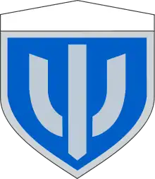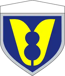 The Imperial Japanese Army flag with symmetrical 16 rays and a 2:3 ratio was abolished in 1945. The Japan Self-Defense Forces (JSDF) and Japan Ground Self-Defense Force (JGSDF) use a significantly different variation of the Rising Sun Flag with red, white and gold colors.[22] It has 8-rays and an 8:9 ratio.[23] The edges of the rays are asymmetrical since they form angles at 19, 21, 26 and 24 degrees.[23] It also has indentations for the yellow (golden) irregular triangles along the borders.[23] The JSDF Rising Sun Flag was adopted by a law/order/decree published in the Official Gazette of June 30, 1954.[23]
