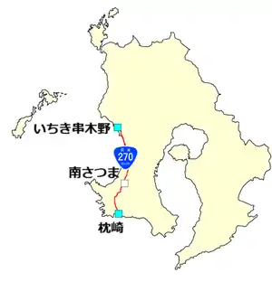 National Route 270 is a national highway of Japan connecting Makurazaki and Ichikikushikino in Kagoshima prefecture, Japan, with a total length of 52.4 km (32.56 mi).