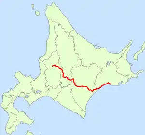 - Origin: Takikawa, Hokkaido (originates at junction with Routes 12 and 451)