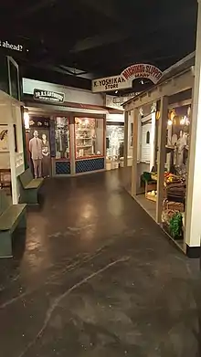 The main exhibit at the Japanese Cultural Center of Hawaii is called "Okage Sama De: I am what I am because of you". It opened in 1995 and shows the history of Japanese immigration to Hawaii from 1868 to present.[12] The exhibit begins by showcasing values that the issei immigrants brought with them, then moves on to depictions of plantation life, picture brides, World War II, the 442nd and 100th Battalion.[13] There is a theater in the middle of the exhibit showing short documentaries produced by the Center. The exhibit then finishes with a section on post-war life in Hawaii.[14]