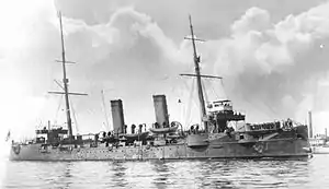During the Russo-Japanese War, Chitose was active in the Battle of Port Arthur as flagship for Admiral Dewa Shigeto. On 9 February 1904, she was part of the 3rd Cruiser Squadron which engaged the Russian fleet at the entrance to Port Arthur, attacking the cruisers Askold and Novik, and sinking a Russian destroyer on 25 February. During the Battle of the Yellow Sea on 10 August, Chitose participated in the unsuccessful pursuit of the cruisers Askold and Novik, and continued to pursue Novik to Hokkaido together with Tsushima, sinking the Russian cruiser at the Battle of Korsakov on 21 August.[5]