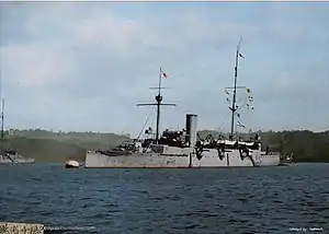 Takachiho (高千穂) was the second and last Naniwa-class protected cruiser built for the Imperial Japanese Navy (IJN) in the 1880s. As Japan lacked the industrial capacity to construct such vessels, the ship was designed and built in the United Kingdom. She participated in the First Sino-Japanese War of 1894–1895, playing a major role in the Battle of the Yalu River and lesser roles in the Battles of Port Arthur, Weihaiwei, the Pescadores Campaign and the invasion of Taiwan. Takachiho played a minor role in the Russo-Japanese War of 1904–1905 where she participated in the Battle of Chemulpo Bay, briefly helped to blockade Port Arthur at the beginning of the war, helped to sink a Russian armored cruiser during Battle off Ulsan and participated in the climatic defeat of the Imperial Russian Navy in the Battle of Tsushima.