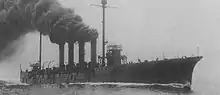 Yahagi participated in World War I as part of Japan's contribution to the Allied war effort under the Anglo-Japanese Alliance. She was in the Japanese squadron which gave chase to the German East Asia Squadron led by Admiral Graf Maximilian von Spee in 1914. Hirado and Yahagi were in the Allied 2nd Southern Squadron led by the battleship Satsuma and commanded by Rear-Admiral Matsumura Tatsuo, patrolling the region around Sumatra unsuccessfully for the German cruiser Emden.